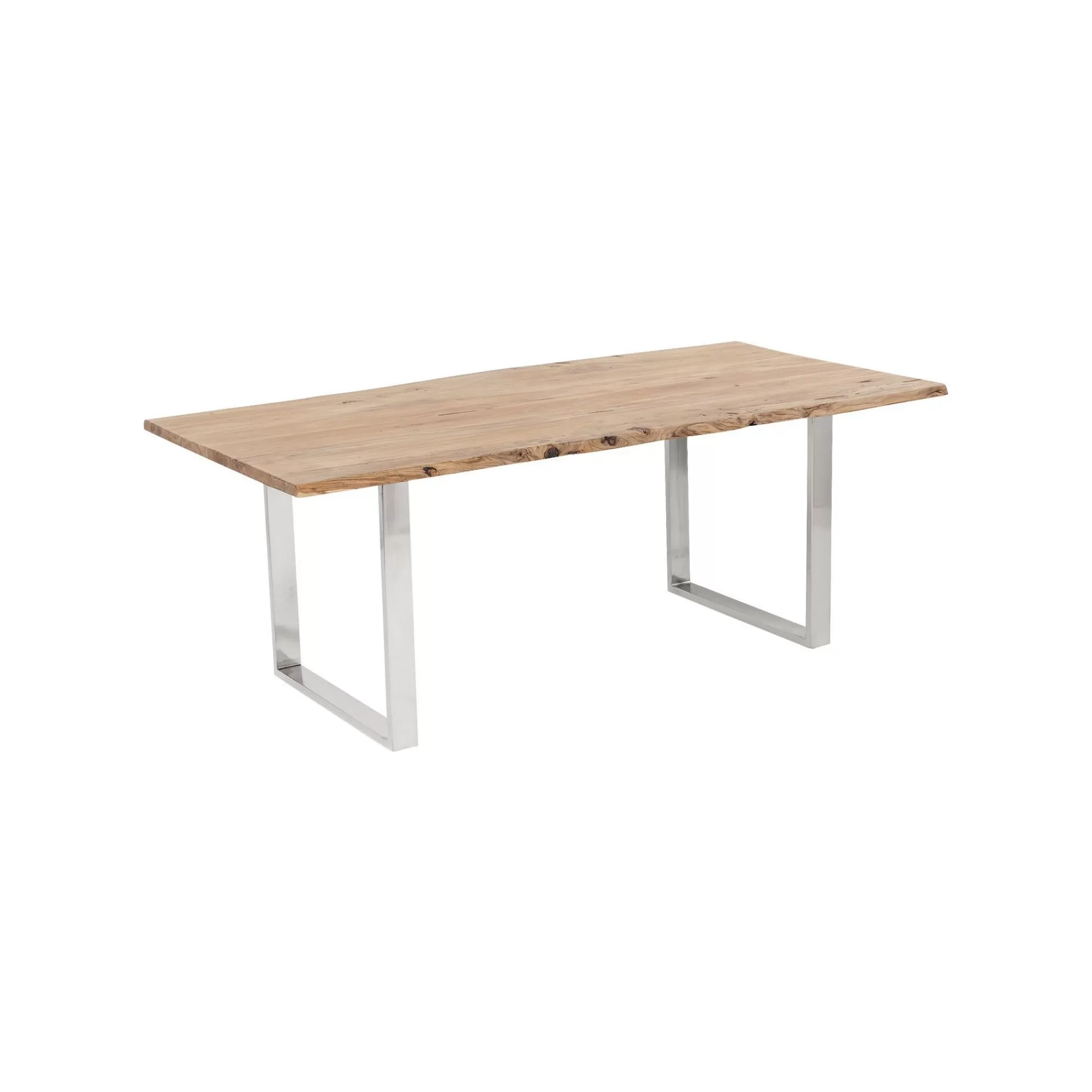 La collection Harmony vous propose une large sélection de tables à manger rectangulaires qui allient un plateau en bois brut à des pieds en acier. Disponible en trois tailles, vous avez le choix entre un plateau en acacia naturel ou laqué noyer à combiner avec deux pieds finition chrome, laiton, noire, argent ou acier brut.