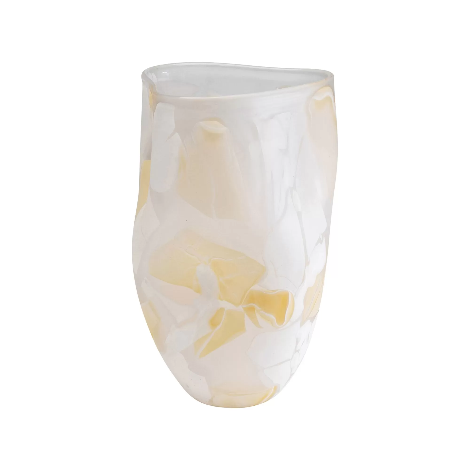 Découvrez l’harmonie naturelle avec notre vase en verre déformé, où les tons beiges et blancs se mêlent dans une symphonie apaisante. Sa silhouette unique évoque la fluidité des éléments, créant une ambiance sereine.
