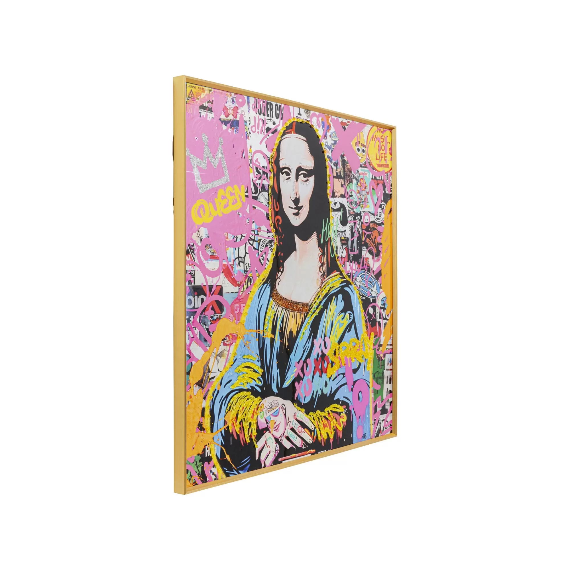Ce tableau revisite le célèbre sourire de cette grande dame avec une explosion de graffitis en arrière-plan. Elle n’a jamais été aussi rebelle, prête à s’installer dans votre intérieur avec un brin d’humour et beaucoup de style urbain !