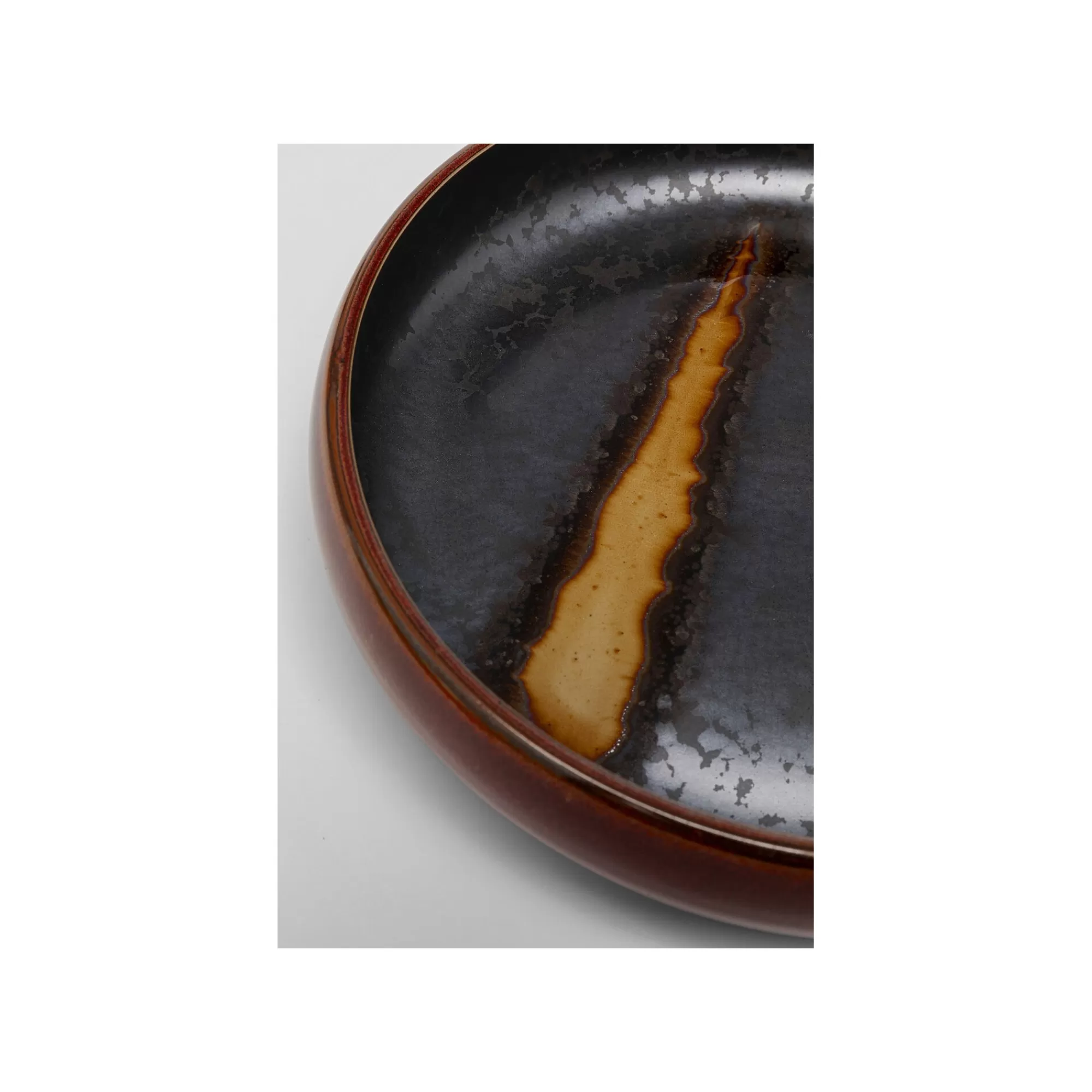 Cette assiette creuse en faïence se distingue par ses nuances vibrantes de rouge, noir et doré. Parfaite pour déguster de délicieuses soupes grâce à sa forme ronde et ses rebords.