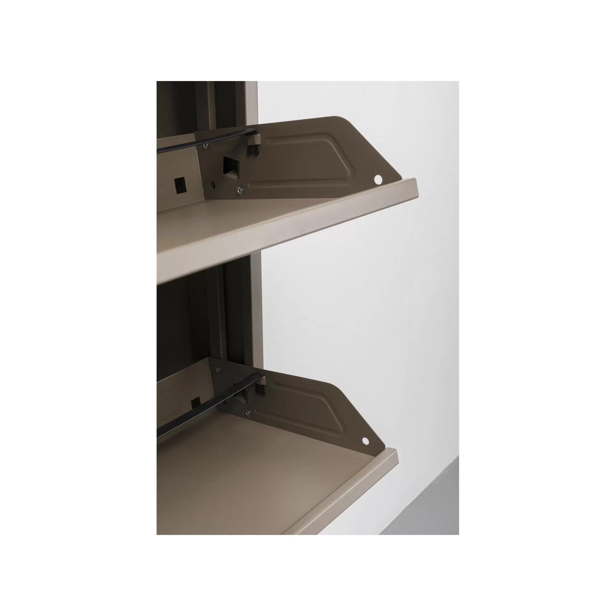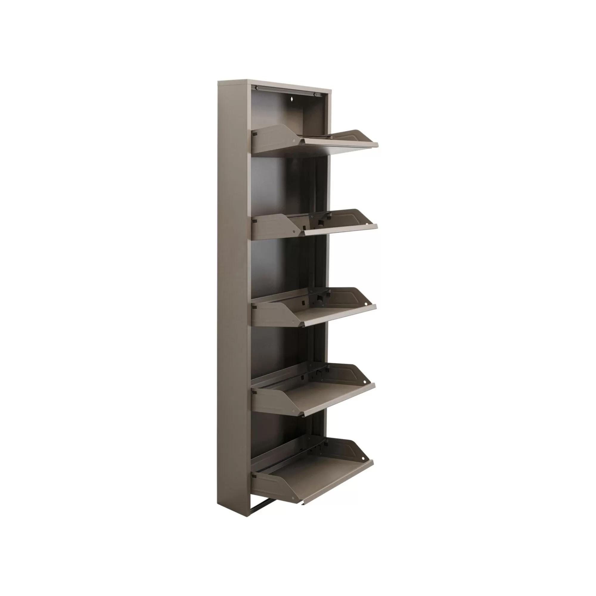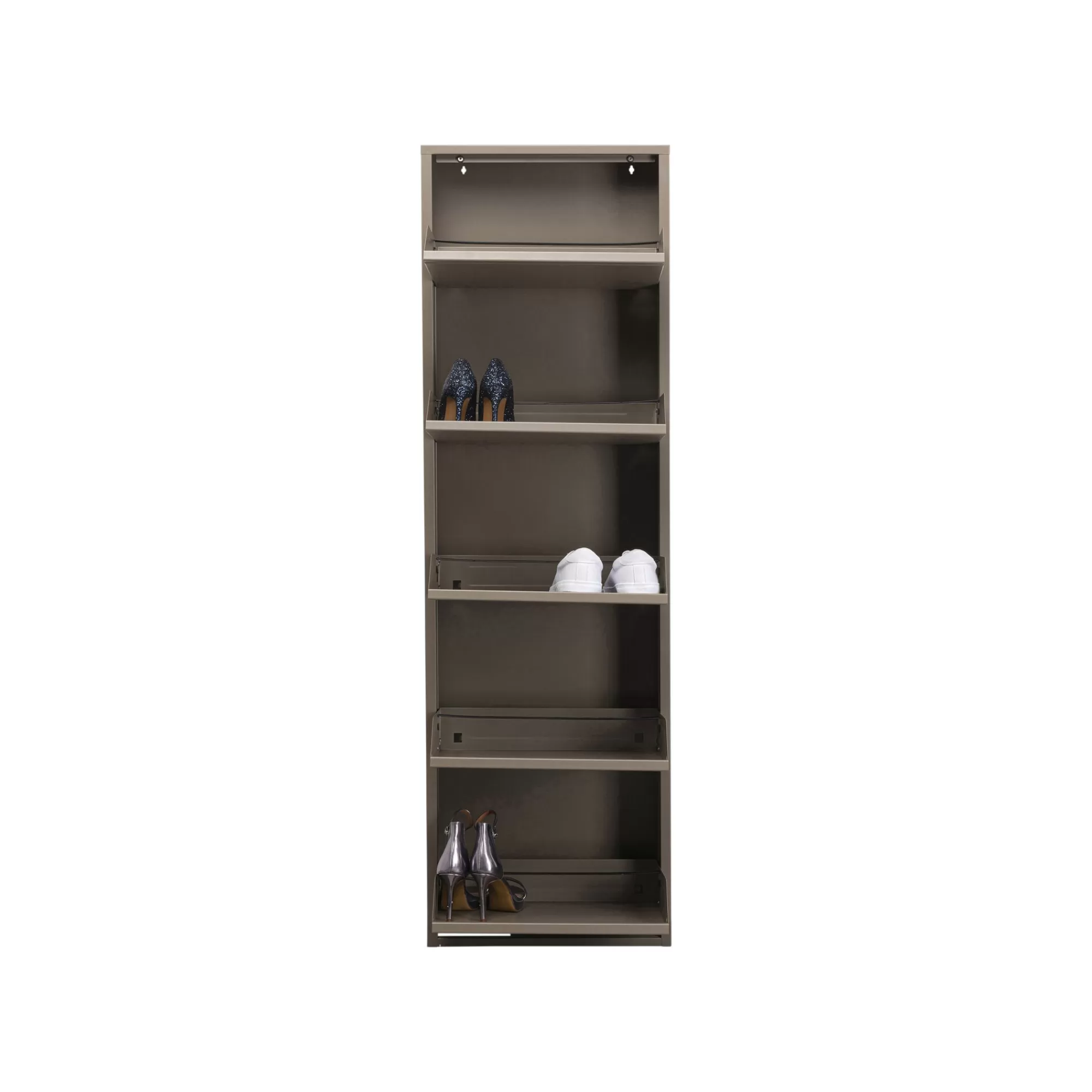 Minimaliste et intemporel. A fixer au mur pour une meilleure stabilité. Sa largeur vous permet de ranger 2 à 3 paires de chaussures par tiroir.