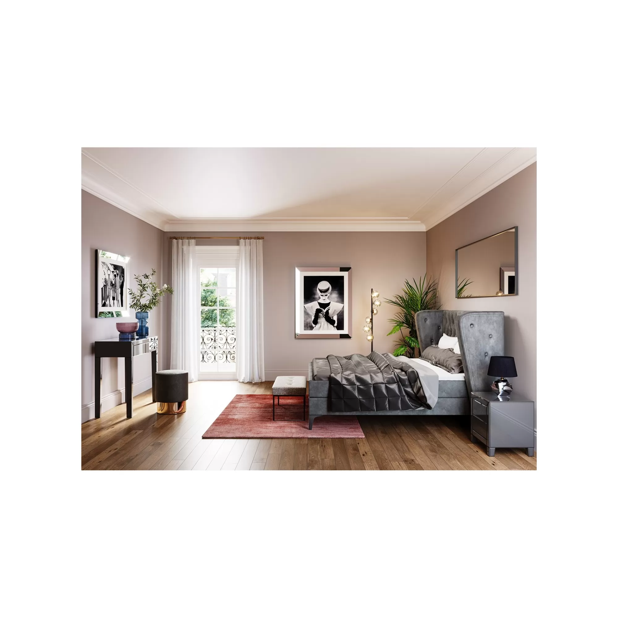 - structure : MDF, habillage : miroir teint