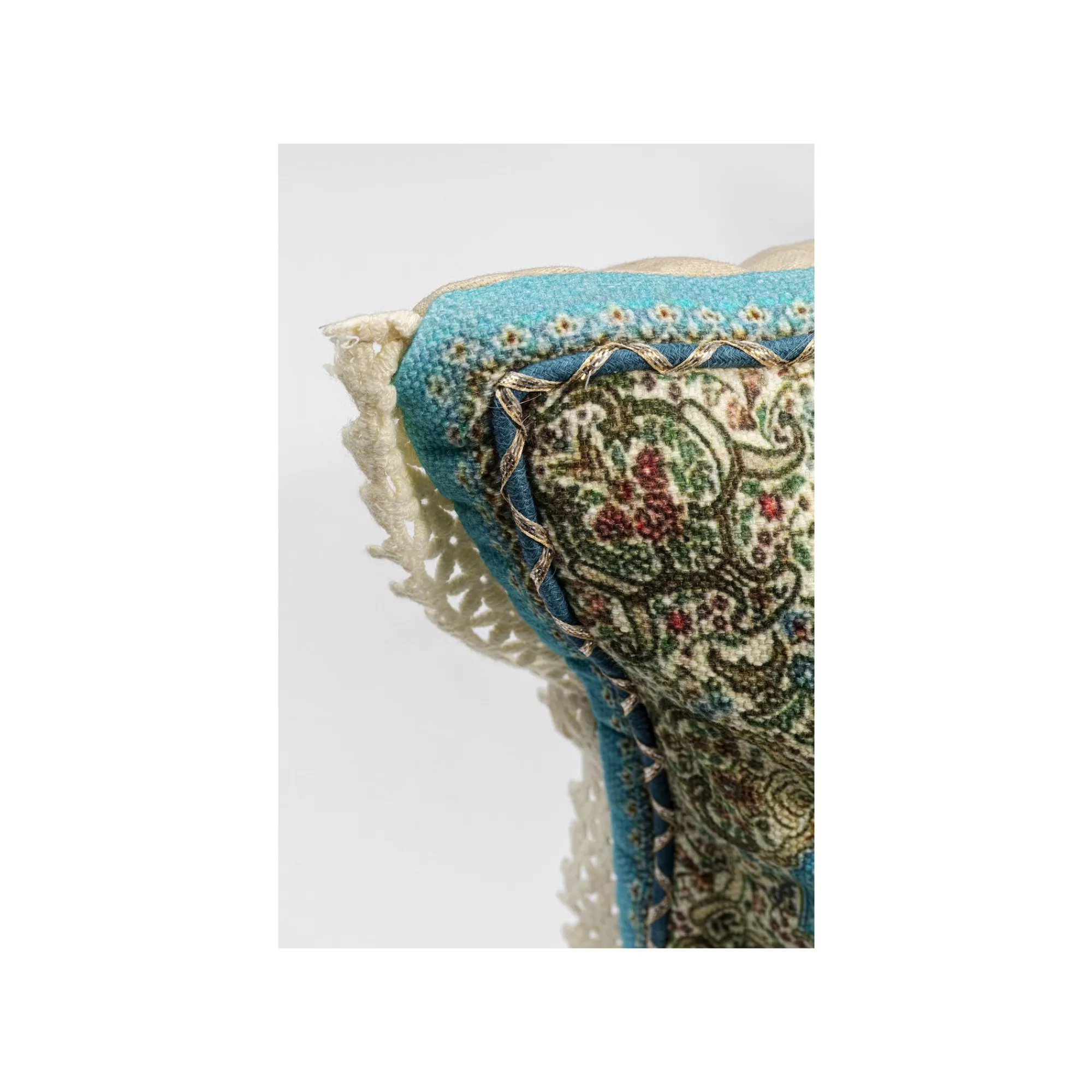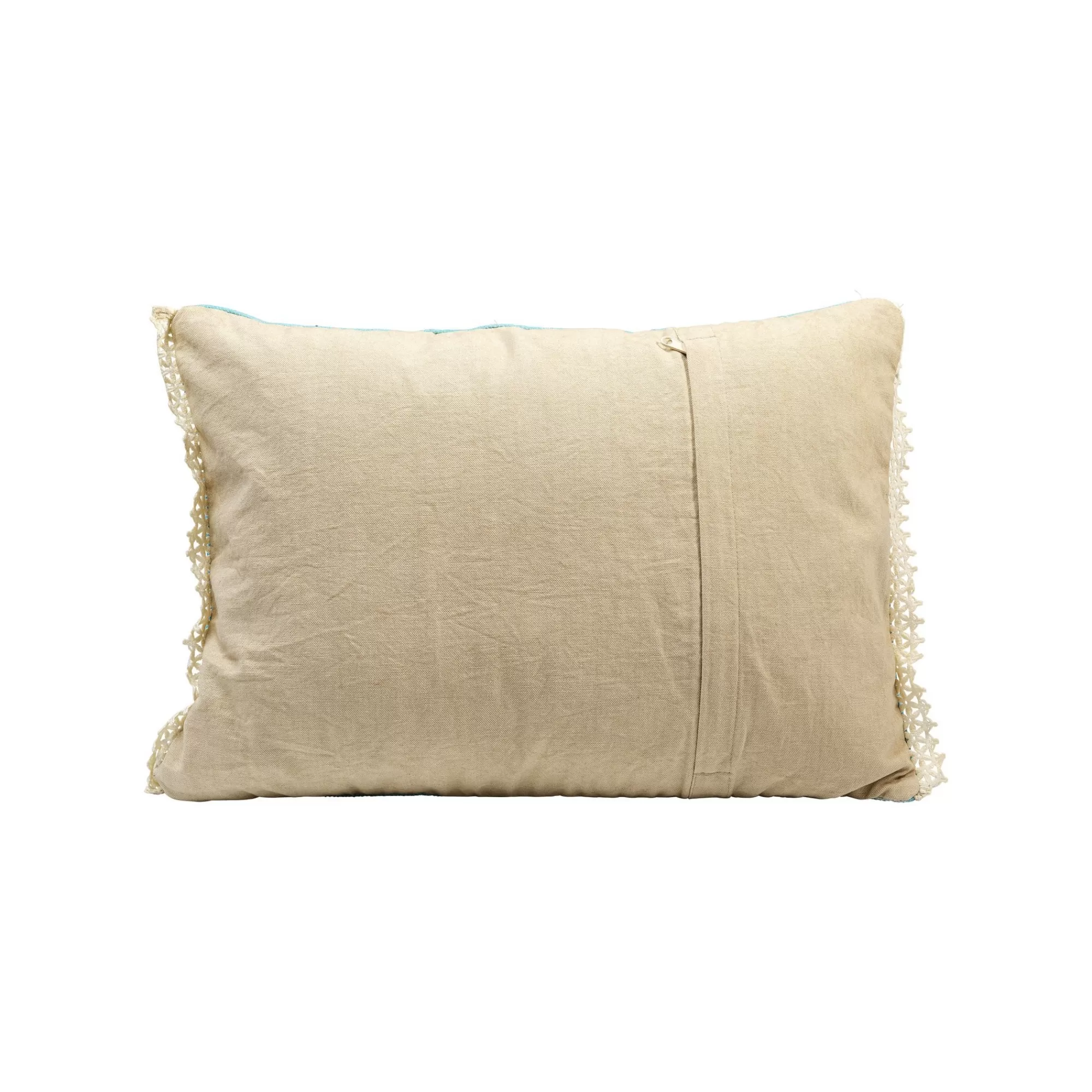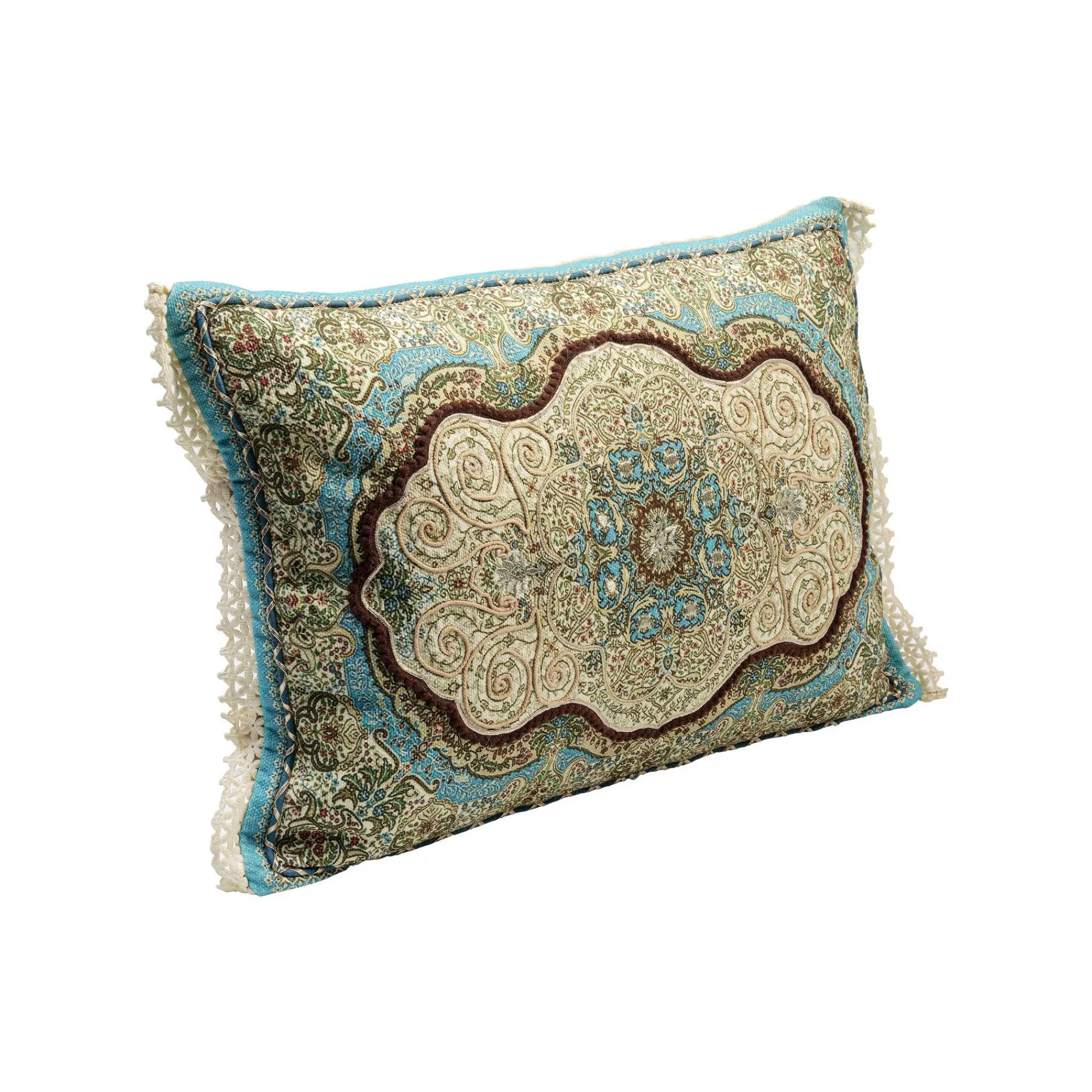 Apportez une touche d’élégance orientale à votre intérieur avec ce coussin décoré d’ornements. Arborant des broderies raffinées et des bordures en dentelle délicate, ce coussin s’inspire de la nature avec ses tons de marron, beige, bleu et vert.