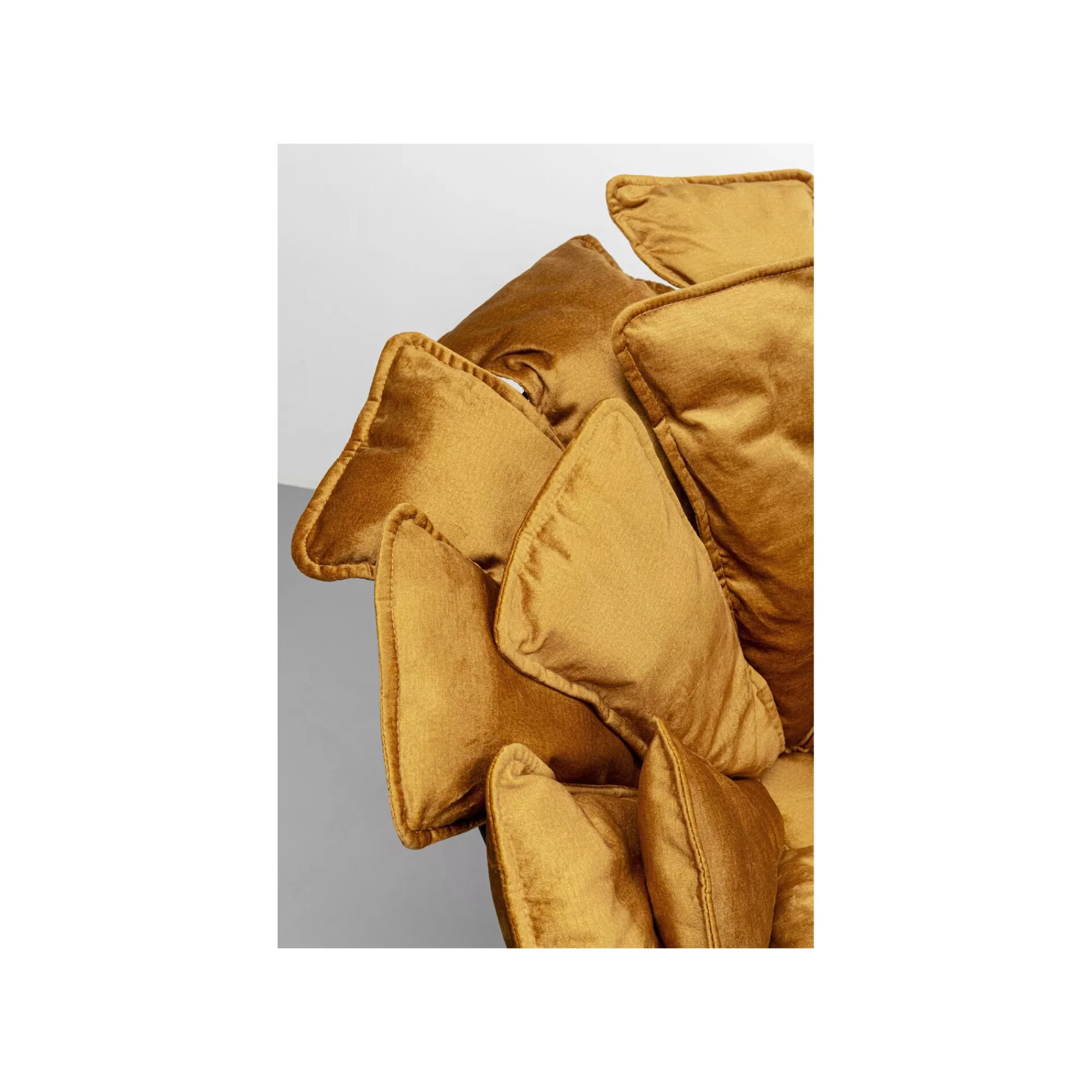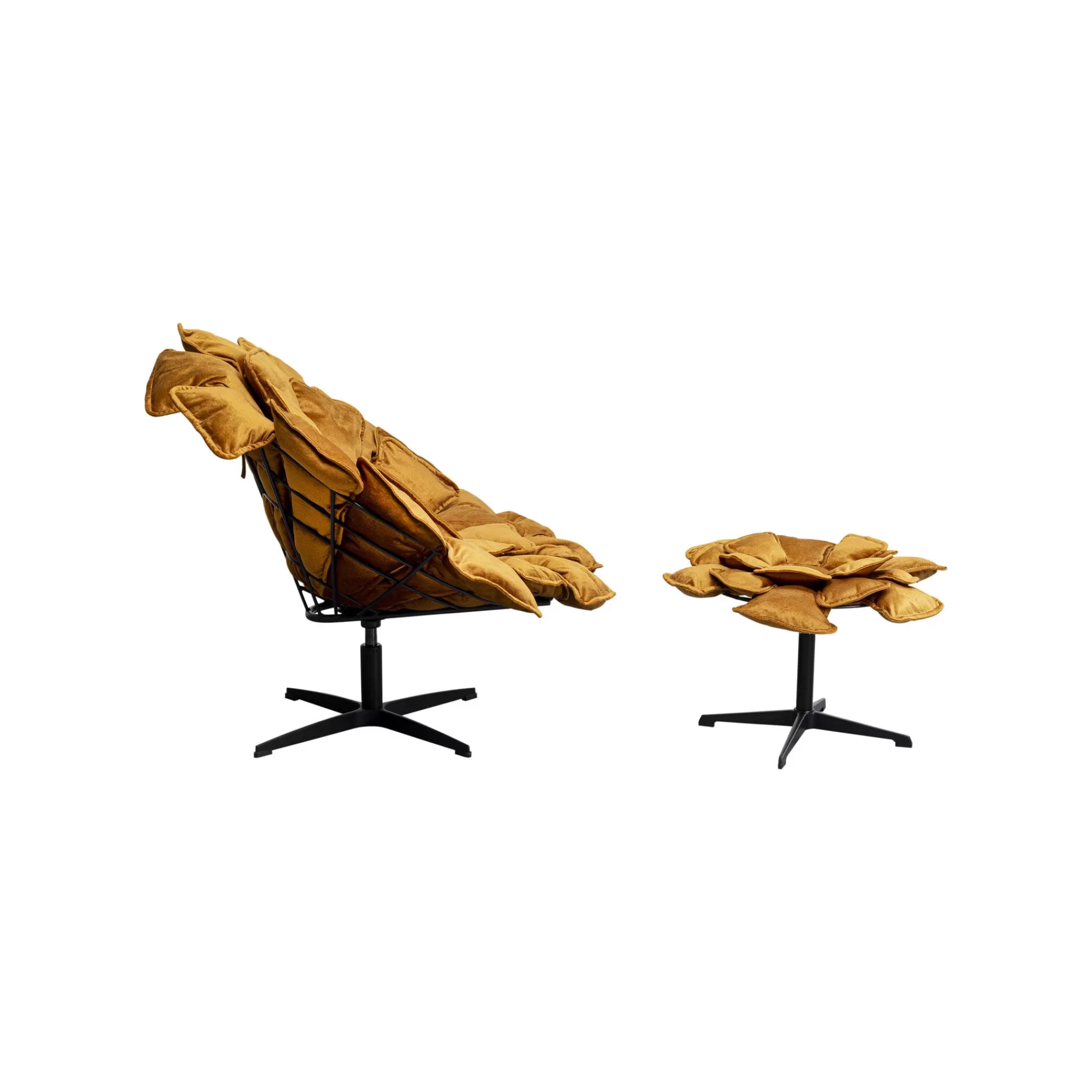 Découvrez ce fauteuil unique en son genre avec son repose-pieds assorti. Ce duo ocre, aux formes arrondies, évoque une fleur en éclosion. Chaque triangle de l’assise représente alors un pétale, offrant une touche poétique à votre intérieur.